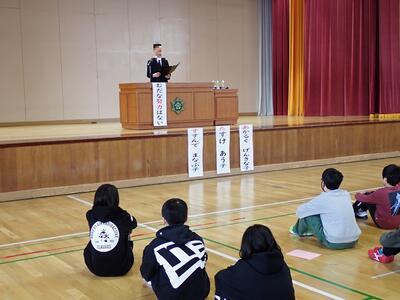 校長先生より今年の干支である「巳」についてのお話をいただき、「あかるくまえむき」「チャレンジ」などのキーワードを胸にみんな良い年になるように呼びかけました。また、児童会長から冬休みの思い出と3学期に頑張りたいことの話がありました。短い学期となりますが、今年度のまとめと次年度の準備として、充実した学期を過ごしてもらいたいと思います。